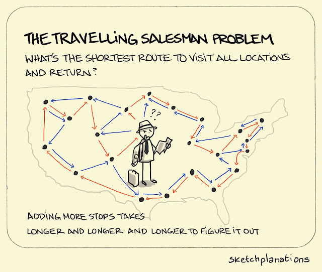 - Interesting article at the link: "Scientists Solve Most Complex Traveling Salesman Problem Ever". Details: A new AI processor has extended the traveling salesman solution from 16 nodes to 22. The traveling salesman is an age-old exercise in optimization, studied in school and relevant to real life. Rearranging how data feeds through the processor allows more than one thread to compute at a time.